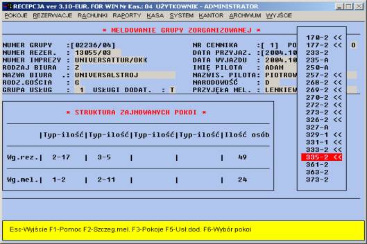 kończymy wybór pokoi dla danej grupy. Jeśli zachodzi konieczność wpisania