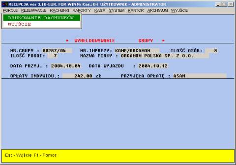 służy do rozliczenia oraz wymeldowania grupy zorganizowanej. Wybór grupy
