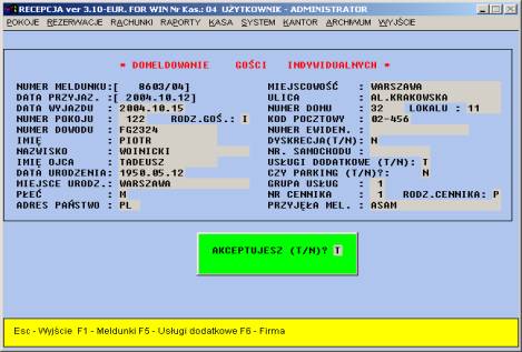 meldunków indywidualnych wraz z numerami pokoju. Akceptując automatycznie
