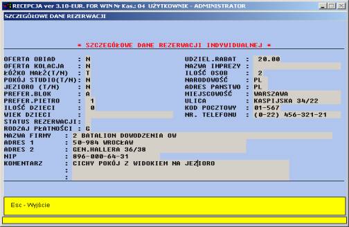 SZCZEGÓŁOWE DANE REZERWACJI INDYWIDUALNEJ