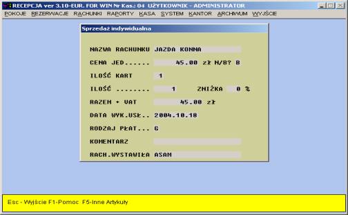 poza hotelu. Przy pomocy tej funkcji recepcjonistka może dokonać sprzedaży