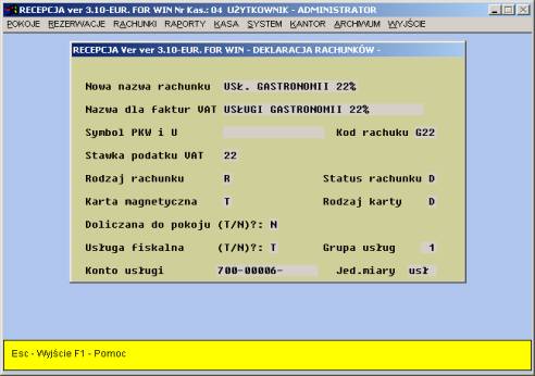 służy do deklarowania nowych nazw rachunków (usług ) hotelowych.
