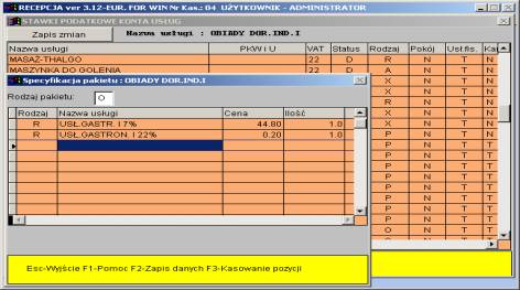 pakietu polega na wpisaniu usług z których dany pakiet się składa, ceny oraz