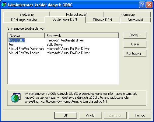 10.Wybierz zakładkę Systemowe DSN i naciśnij Dodaj